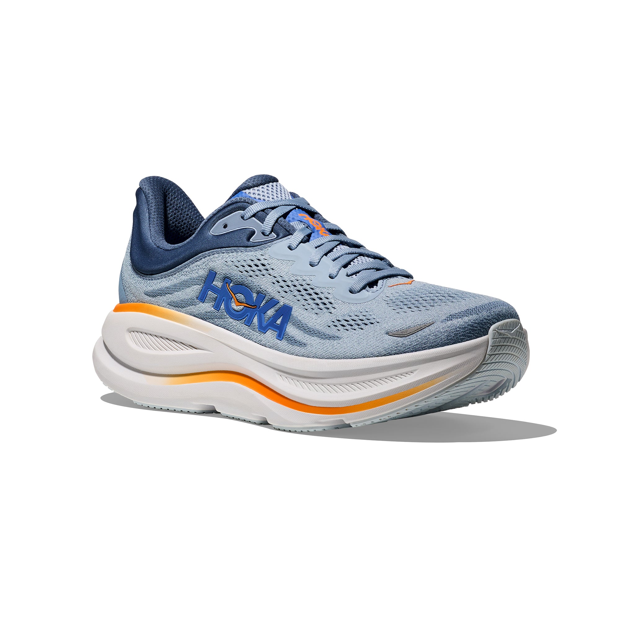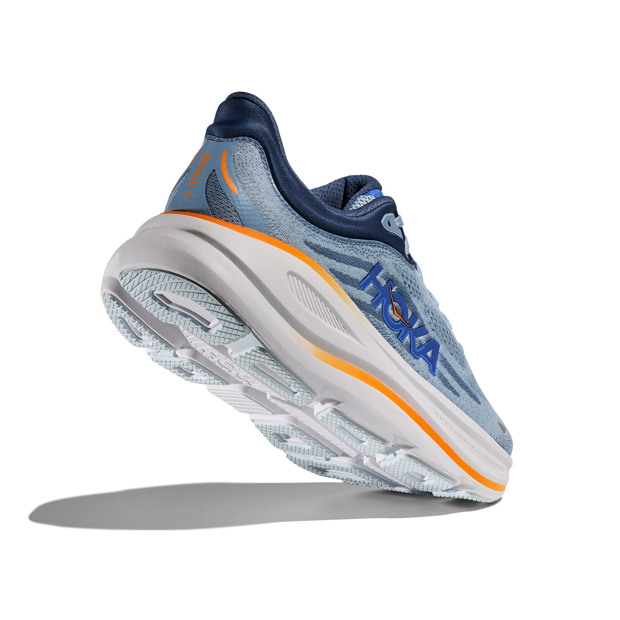 The Bondi 9 features a higher bed of soft cushion, designed to provide a forgiving impact and ride.